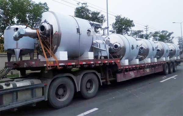 收集脂肪液缓存保温罐、酶解分糖液出膜缓存保温罐、胶原蛋白肽液缓存保温罐、进膜分离液缓存保温罐等等已经发往贵公司。 下面我们具体看一下发货情况如图: